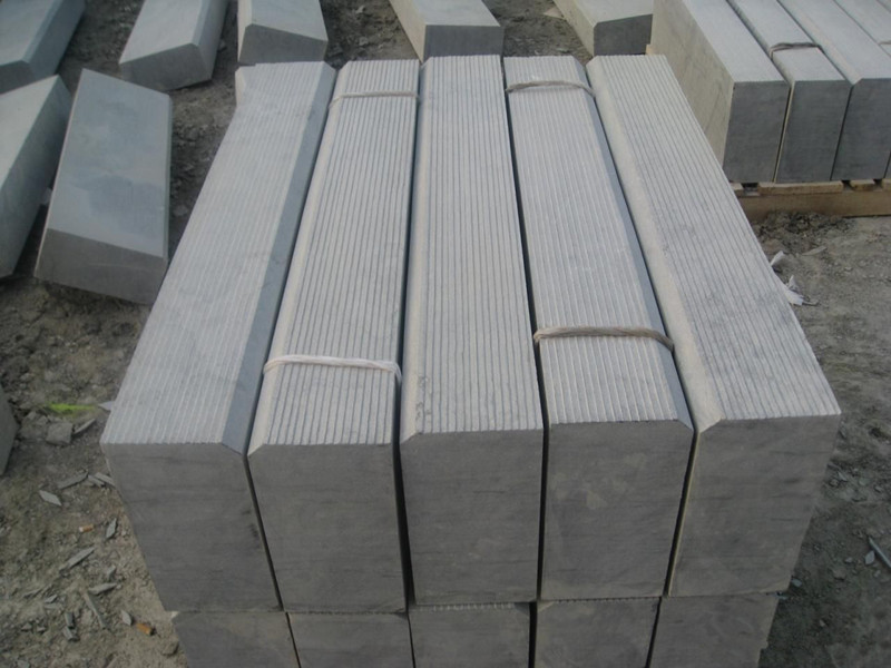 青石路沿石和青石板材照片