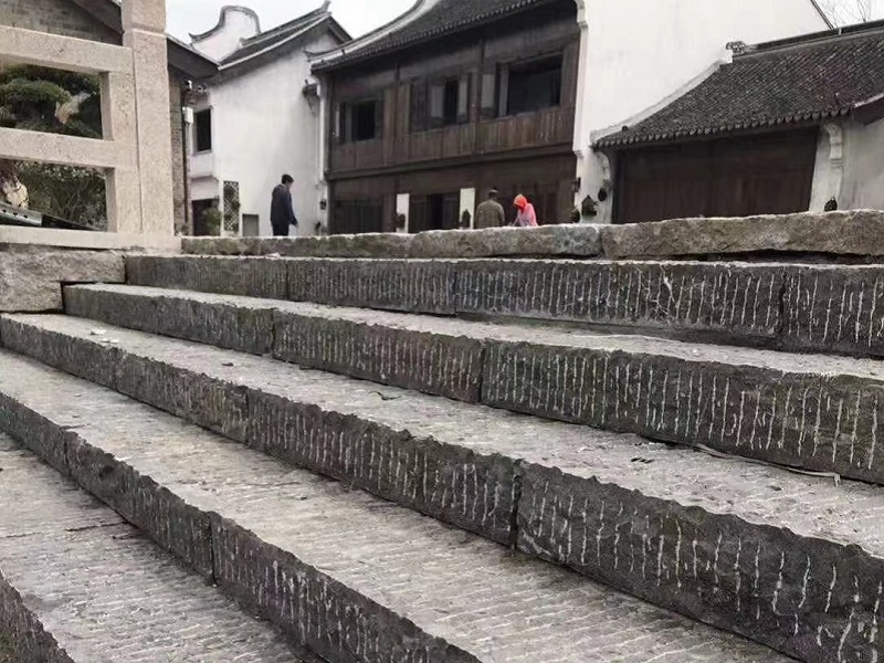 青石臺階石,青石石材切割后按客戶要求表面處理有手打鏨道面、荔枝面、火燒面還有部分要求自然面就是把平整的機切面做出凸凹不平的表面。